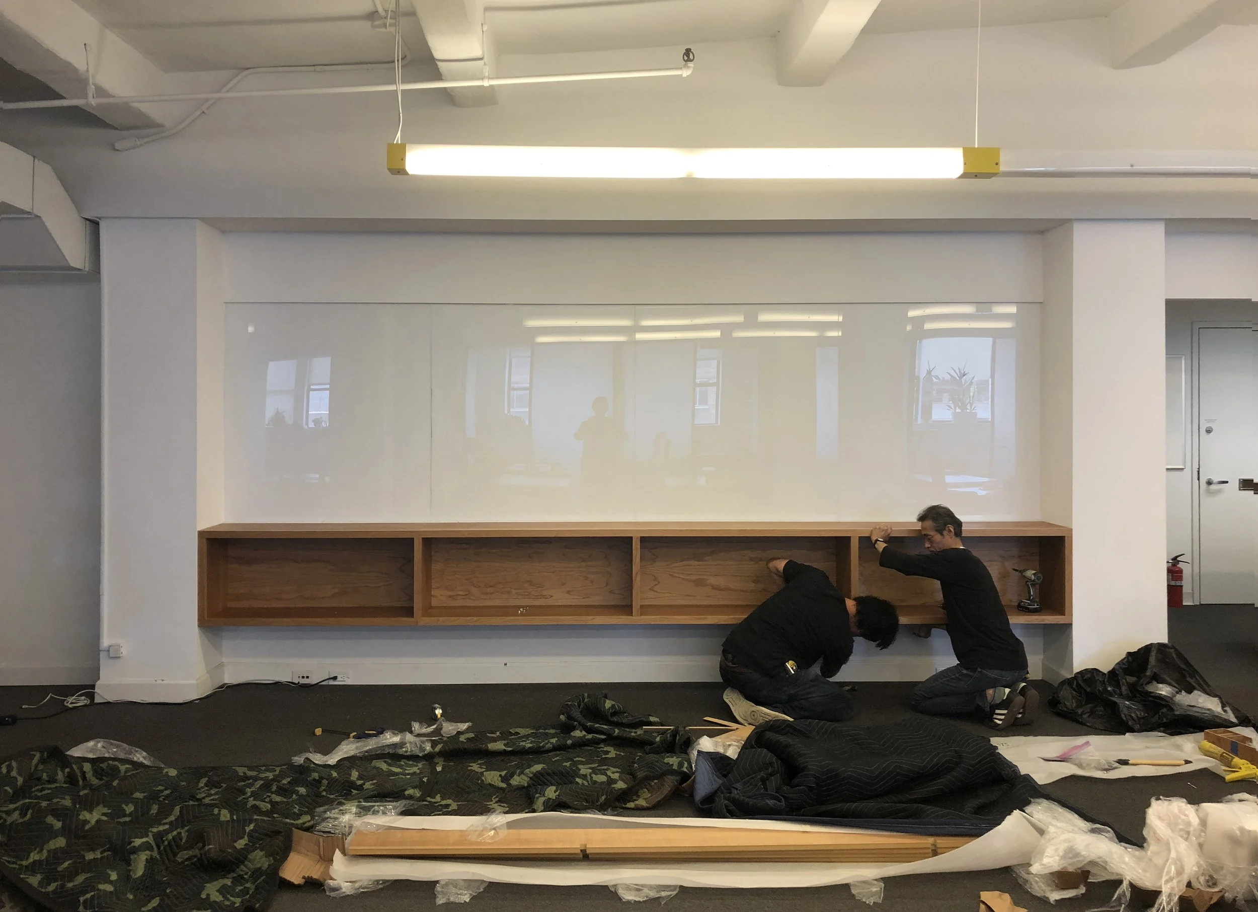 The introduction of natural materials (such as cherry plywood) lend the experience of the workspace a soft calmness.