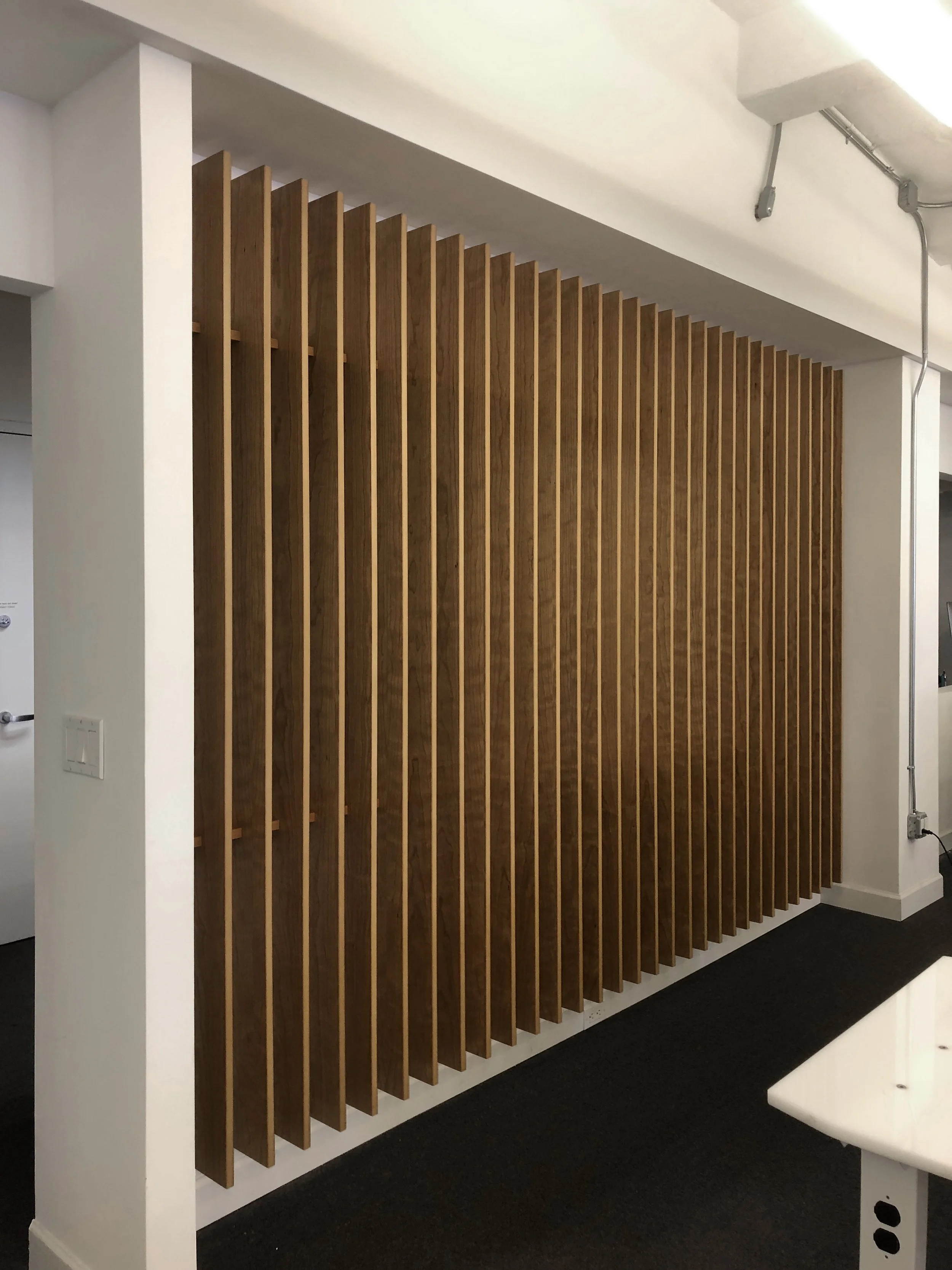 Plywood paneling and vertical louvers will highlight verticality and facilitate noise attenuation.