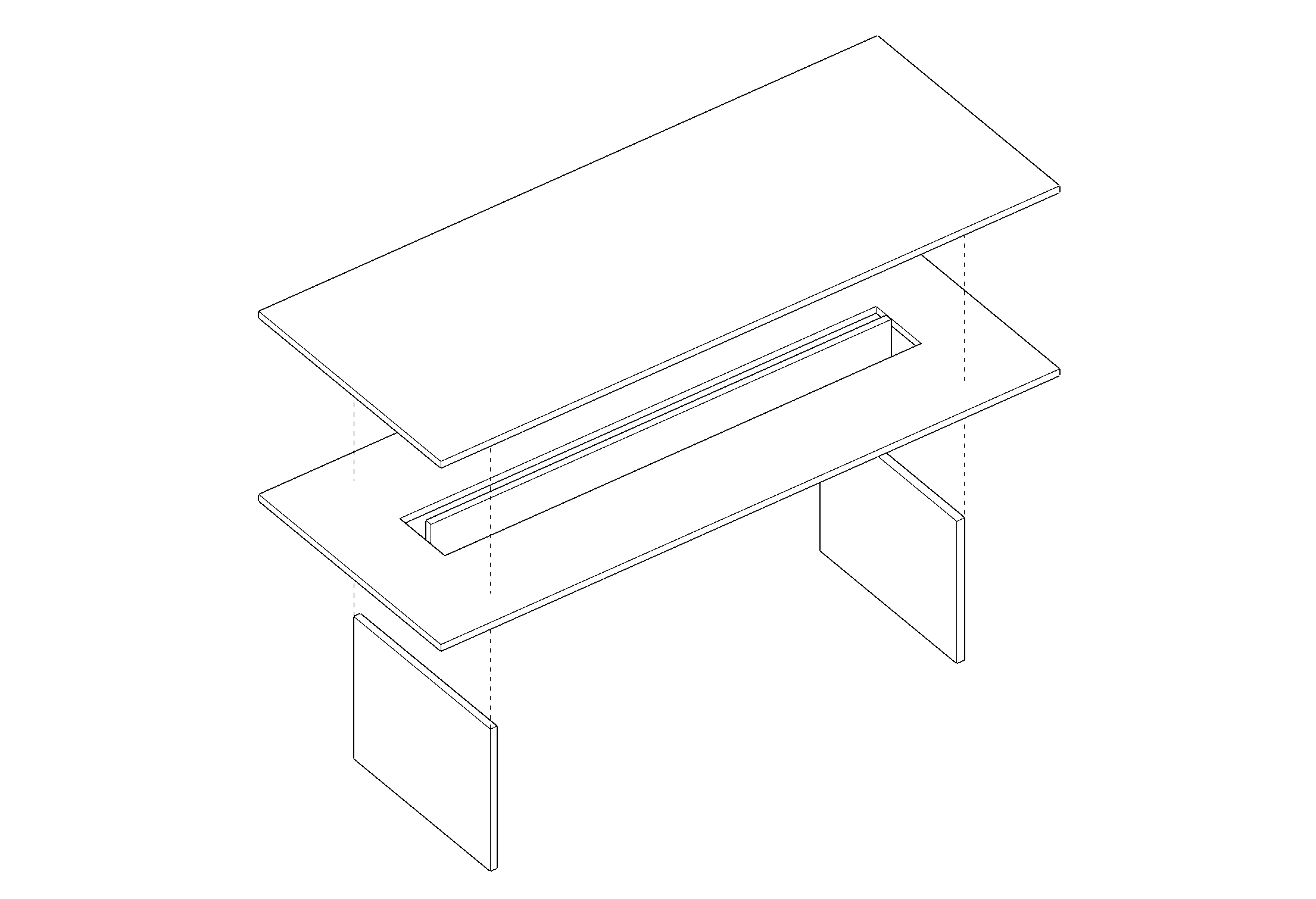 The most noticeable feature of the table is a double tabletop. Structurally, the layered tabletop acts as a beam to prevent flexion. Functionally, the lower tabletop allows for a rapid shift from work to dining - as computers, drawings, and paperwork are quickly stored away.
